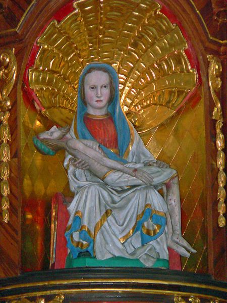 Dennoch ist die verträumt oberhalb eines Quellsees liegende Kirche einen Besuch wert. Auf dem umgebenden Friedhofspark lässt sich Geschichte hautnah erleben. Dort erinnern zahllose detailreich gestaltete und mit Texten versehene Grabmäler an die Gefallenen des bayerisch-preußischen Krieges 1866. Im Inneren der Kirche sollte man vor der Pietà aus der Zeit um 1420 verweilen. Die ernst gearbeitete Figur vermittelt den tief empfundenen Schmerz der Mutter, die ihren toten Sohn in den Armen hält, sehr ergreifend.
