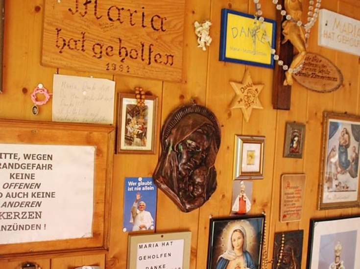Holz- oder Wachstafeln mit der Aufschrift „Maria hat geholfen", Rosenkränze oder Kerzen - untrennbar mit der Wallfahrt sind vor allem seit dem 18. Jahrhundert Votivgaben verbunden. Auch wenn heute keine Wachsfiguren mehr wie in früheren Tagen gespendet werden, die Menschen bringen gern in sichtbaren Zeichen ihre Dankbarkeit zum Ausdruck, wenn ihnen Gott aus körperlicher, seelischer oder finanzieller Not geholfen hat.