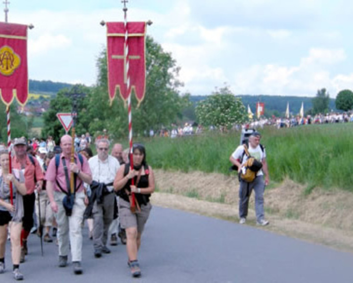 Heute machen sich immer am Freitag nach Pfingsten die Pilgerinnen und Pilger aus Mömbris (und mittlerweile auch aus der weiteren Umgebung) auf den Weg nach Walldürn.