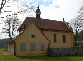 Doch durch Bauernkriege, Reformation und Dreißigjährigen Krieg wurde der erste kleine Holzbau stark in Mitleidenschaft gezogen und musste zu Beginn des 18. Jahrhunderts abgerissen werden. Der Neubau war 1715 fertiggestellt und wurde im August 1716 zu Ehren des gekreuzigten Heilands geweiht. Eine Handskizze aus dem Jahr 1720 zeigt neben der Kreuzkirche ein Eremitenhaus sowie eine eine kleine Marienkapelle, in der das gotische Madonnenbild aus der Zeit um 1420 stand. Als der kleine Kapellenbau zusehends verfiel, übertrug man das Marienbildnis in die benachbarte Kreuzkirche, wo es jetzt auf dem linken Seitenaltar steht.