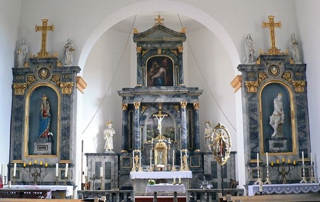 Beachtenswert ist auch das Kruzifix von Ambrosius Glückstein (1933) an der linken Seitenwand, das dazu dienen sollte, „dass Adolf Hitler untergeht". Wertvolle Votivgaben, darunter lebensgroße Kinderwachsvotive, zeugen von wunderbaren Gebetserhörungen. Auffallend an diesen liebevoll gestalteten Kinderfiguren sind die Gesichter mit zum Teil porträthaften Zügen und Echthaar sowie die Ausstattung mit Original-Kleidern.