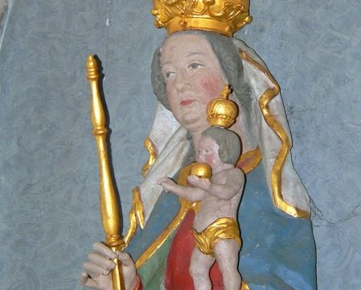Die Bedeutung als Marienwallfahrtsort verdankt das Kirchlein dem gotischen Madonnenbild aus der Zeit um 1420, das anfangs in einer kleinen Kapelle direkt neben der Kreuzkirche stand. Als diese Holzkapelle immer mehr verfiel, brach man sie 1802 ab und übertrug das Marienbildnis in die Kreuzkirche. Die etwa zwei Meter große Figur zeigt Maria, die in der rechten Hand das Zepter hält, während auf ihrer linken Hand das Jesuskind mit dem Reichsapfel steht; beide Figuren tragen vergoldete Kronen