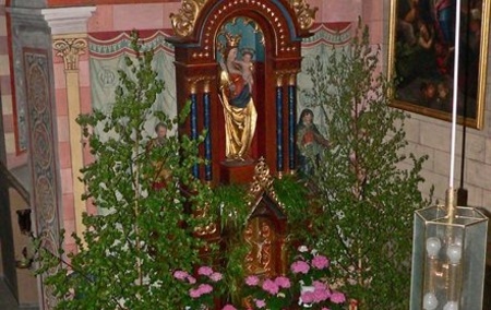 Legenden ranken sich um die Entstehung der abseits großer Straßen gelegenen Greßhäuser Kirche „Maria vom Sieg". So heißt es, dass an dieser Stelle einst eine mächtige Linde stand, unter deren Blätterdach sich die Einwohner zu gemeinsamen Andachten versammelten. Eines Tages hörten die Andächtigen aus der Linde einen himmlischen Gesang. Als sich dieses Wunder wiederholte, forschte man nach und entdeckte in dem Baum ein Muttergottesbild. Diese wundersame Begebenheit veranlasste die Einwohner zur Erbauung einer Kirche, in der das Gnadenbild verehrt wurde. Eine andere Quelle berichtet, dass im 17. Jahrhundert die Schweden das Bild des Öfteren in die im unteren Dorf befindliche Weet geworfen hätten, es aber stets am andern Morgen an seinen alten Platz in die Kirche zurückgekehrt sei.
