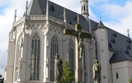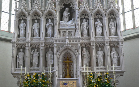 Der an sich schon beeindruckende hohe Chorraum aus dem 15. Jahrhundert mit seinen aufstrebenden Fenstern, dem zierlichen Netzgewölbe und den wieder freigelegten Ornamenten strahlt die filigrane Durchlässigkeit der Gotik aus. Perfekt miteinbezogen wirken auch die Kreuzwegstationen im Stil der Nazarener. Der neugotische Hochaltar wurde 1878/1882 nach Entwürfen Heideloffs von Josef Metzger geschaffen; in den zwei Geschossen des Altares stehen zu beiden Seiten des Tabernakels die zwölf Apostel, darüber betrauert Maria den Leichnam ihres Sohnes.