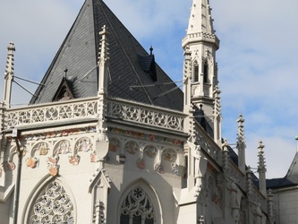Nach dem Durchschreiten des Hauptportals sollte man die Augen nach oben in den Portalbogen schweifen lassen. Dort schwebt der so genannte Viertugendmann, ein in Form eines Andreaskreuzes ausgestreckter Jüngling in gotischem Lendenschurz und mit persischer Mütze. An Händen und Füßen trägt er vier Symbole, die für die vier Kardinaltugenden Mäßigung (Schankmaß), Gerechtigkeit (Waage), Klugheit (Schlange) und Stärke (Löwe) stehen. In seiner durchkomponierten Gestaltung verkörpert er den neuen Adam, den neuen Menschen nach dem Vorbild Christi. Zugleich zeigt er über die vier Tugenden einen Weg ins Reich Gottes auf.