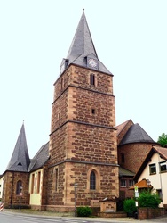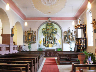 Bereits 1474 konnte ein Kirchenneubau im spätgotischen Stil errichtet werden. Besonders verdient machte sich dabei der Amtmann Engelhart von Berlichingen, der in einem Kollektenbrief vom 8. Juni 1473 von allen Ständen Spenden für den Bau erbat. Geweiht wurde die neue Kirche am Fest Mariä Opferung 1476 durch den Würzburger Weihbischof Johannes Hutter.
