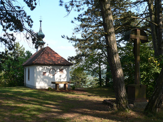 Ungemein reizvoll liegt das Erlabrunner Käppele in einem lichten, mediterran anmutenden Schwarzkiefernwald auf dem Hochplateau des Volkenberges. In der stillen Waldeinsamkeit findet der Wanderer und Pilger nicht nur Erholung für Körper und Seele, sondern kann zudem einen atemberaubenden Blick ins Maintal, auf steil abfallende Rebhänge und fränkische Dörfer genießen.