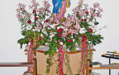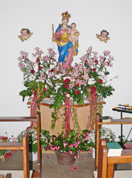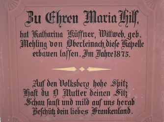 Nach einem ersten Bildstock entstand im Jahr 1875 der kleine Kapellenbau, der sich in den letzten 130 Jahren im Wesentlichen kaum verändert hat. Bis heute laden der schlichte Innenraum und die barocke Muttergottes mit Jesuskind Vorüberkommende zum kurzen Verweilen ein.